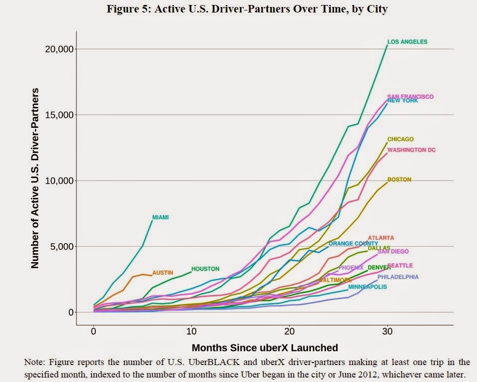 Here's a picture of Uber's growth by city. Clearly, it's a bigger presence in LA, SF, and NY. But the takeoff growth more recently in Miami and Houston is striking.,