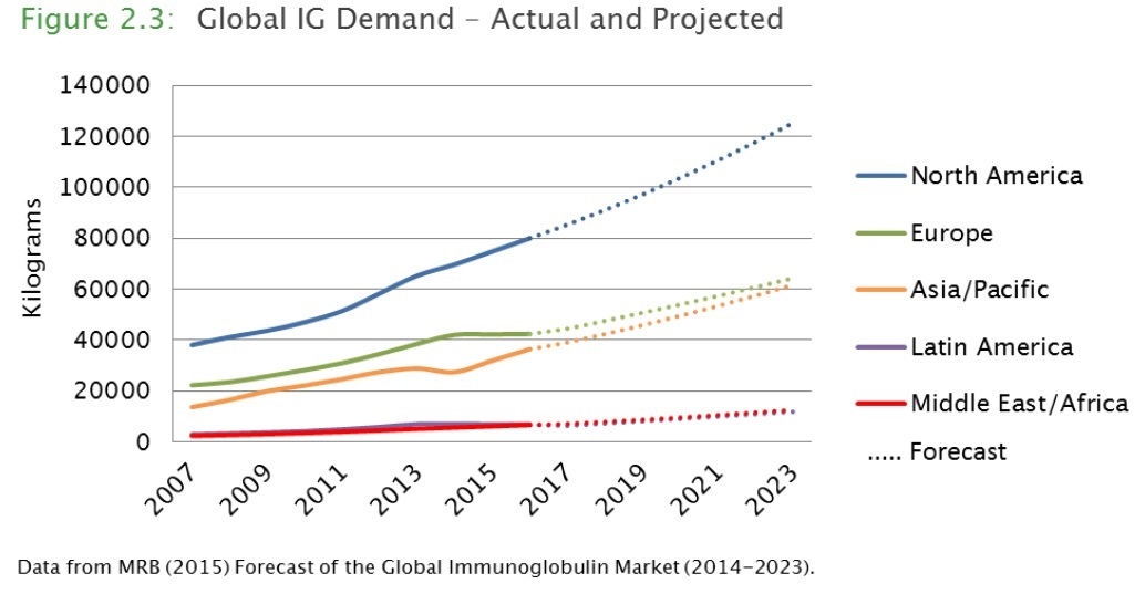 Here's a figure showing the growth in demand for immunoglobulin products, which come from blood plasma